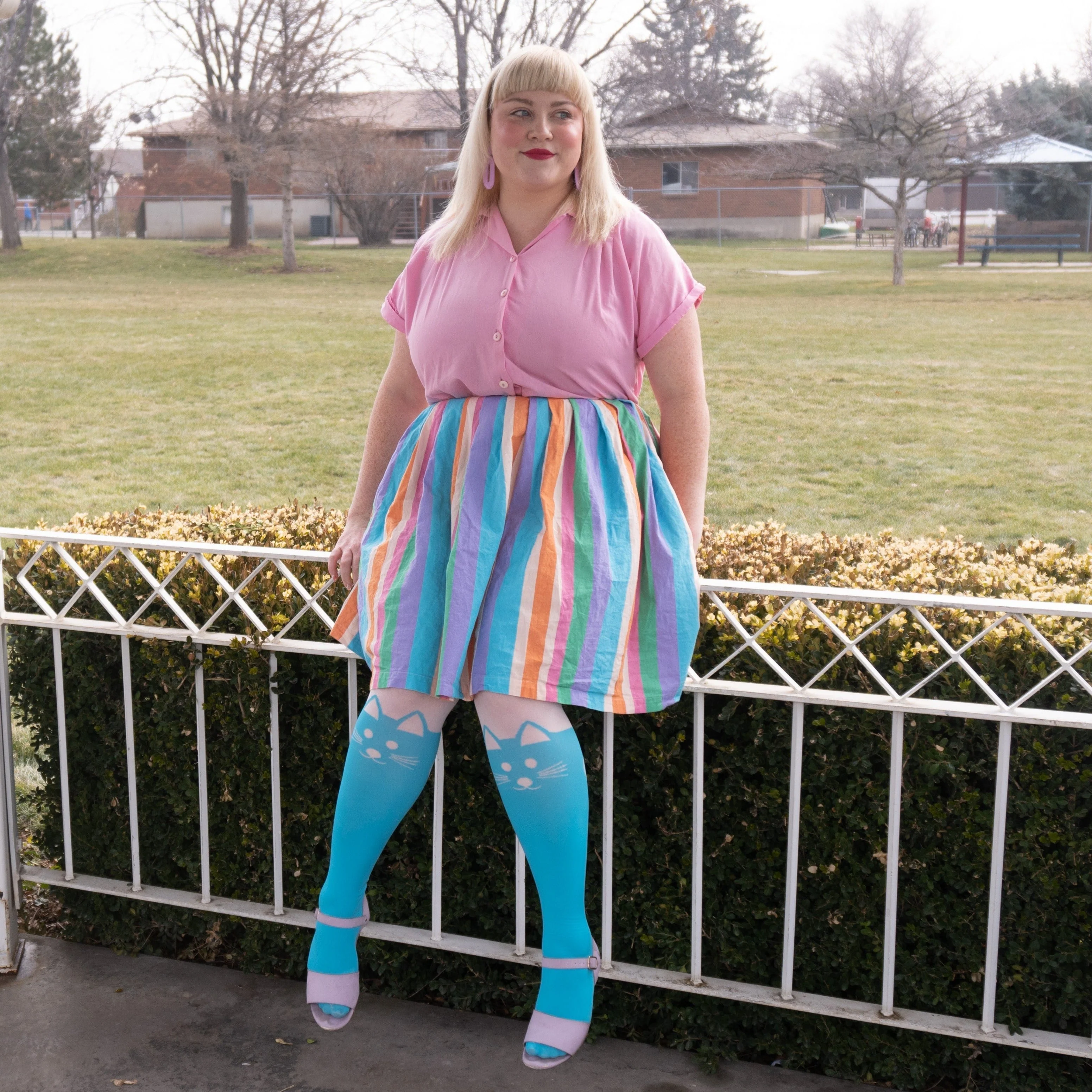 Our Snaggler favorite Witchful thinking tights have been given a makeover. Blue and white over the knee mock sock tights with a cute cat design, these are an epic pair of tights to jazz up your every day. Comfy and stretchy, these tights are designed to fit every body and look great no matter what. Strong and durable, you can wear them again and again.